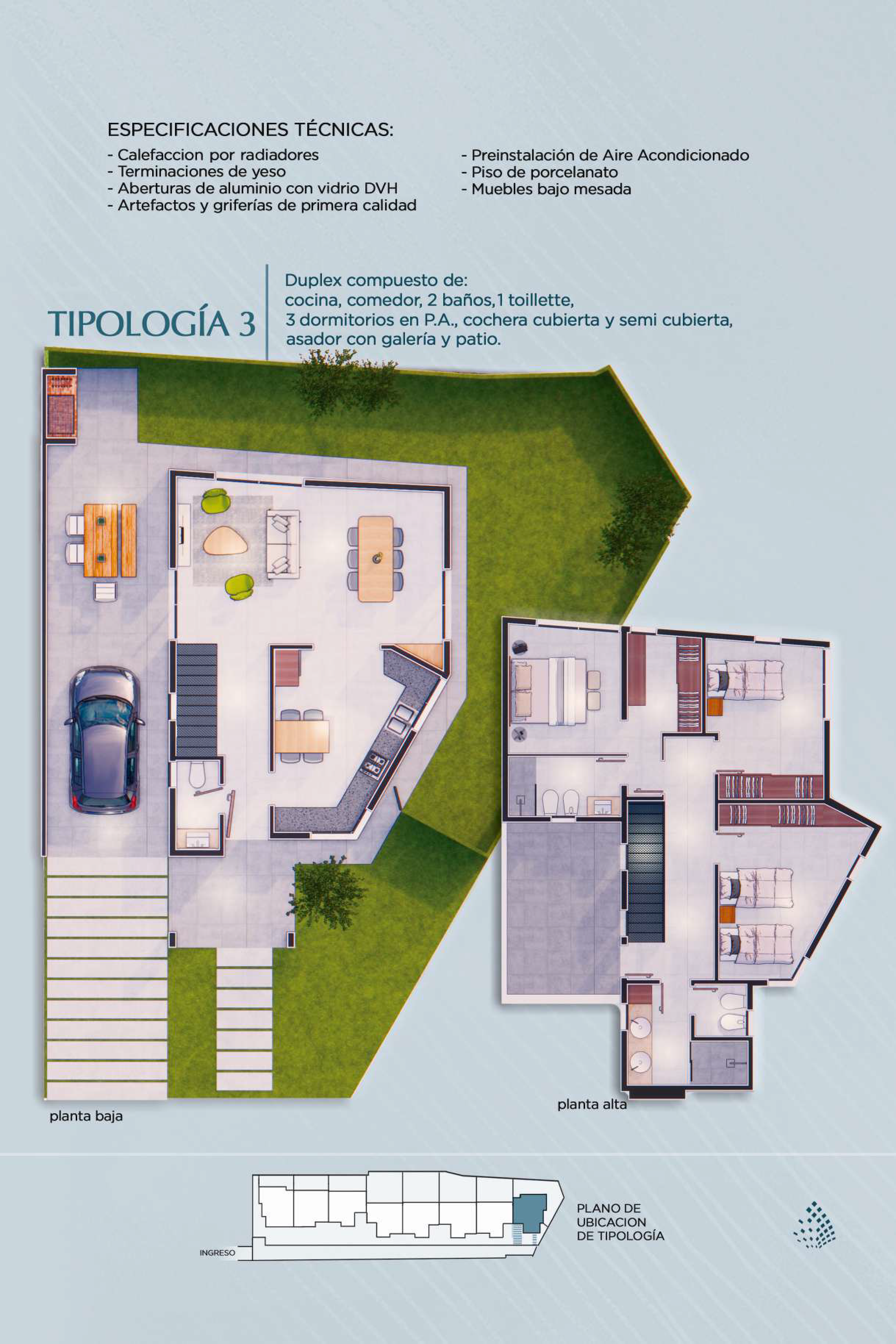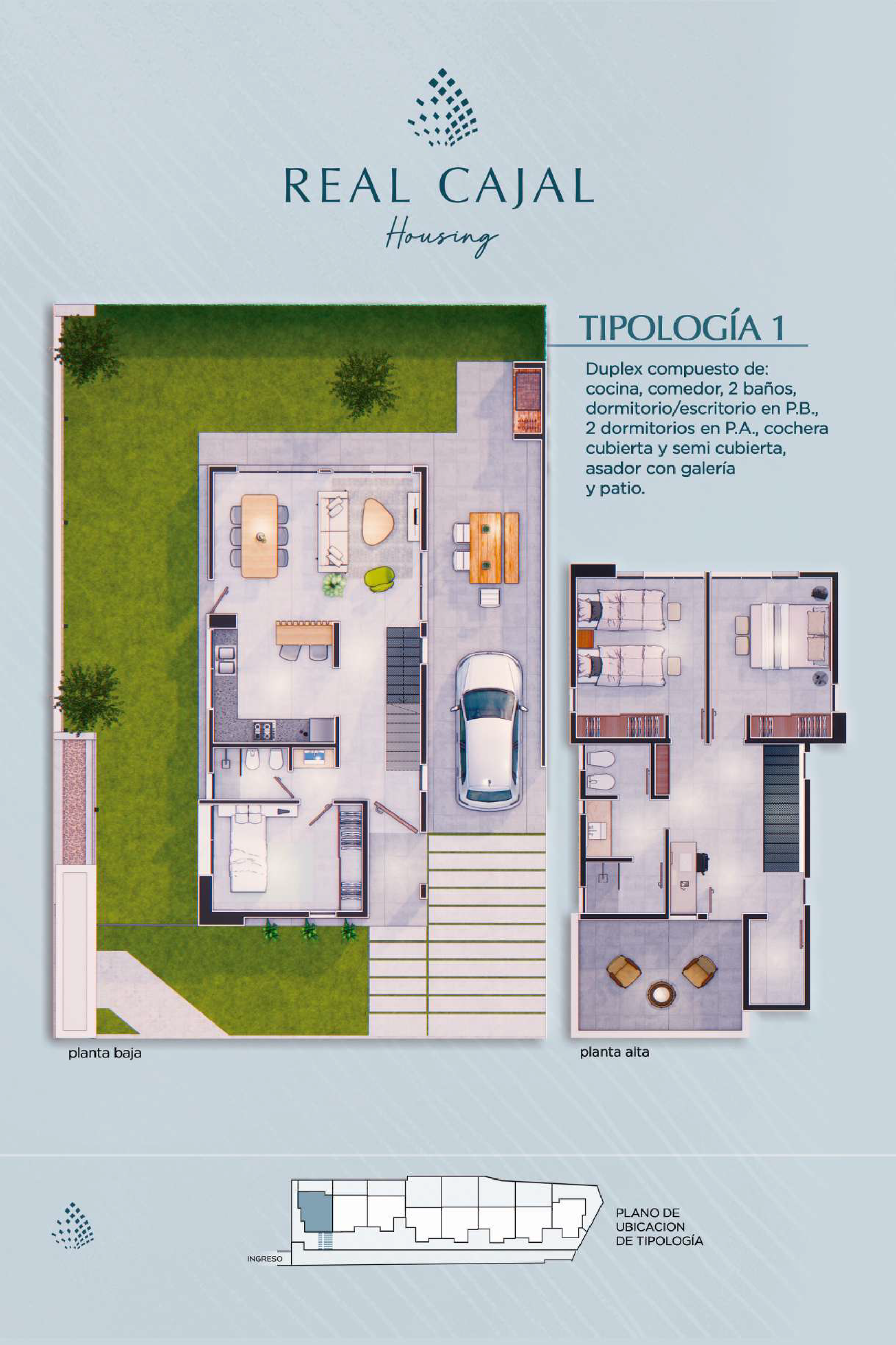 Por favor, tome en cuenta lo siguiente respecto a lo expuesto en esta página web: Naturaleza Representativa. Las representaciones visuales, renders, planos y demás material gráfico presentado en este sitio web están diseñados con fines conceptuales e ilustrativos. Estas representaciones no deben considerarse como un reflejo exacto del producto final que se construirá. Estos cambios podrían afectar la apariencia y características del proyecto final. Diferencias de Representación: Las diferencias entre las representaciones visuales en este sitio web y el producto final podrían incluir, pero no se limitan a, variaciones en colores, texturas, acabados, dimensiones y distribución espacial. No Vinculante Legalmente: La información proporcionada en este sitio web no constituye un contrato legal ni una garantía expresa o implícita de que el producto final coincidirá completamente con las representaciones visuales presentadas. Proyecto en Desarrollo. Tenga en cuenta que el desarrollo inmobiliario se encuentra en proceso de diseño y construcción. Los detalles específicos pueden evolucionar a medida que avanza el proyecto. Asesoramiento Profesional: Le recomendamos que consulte con nuestros representantes de ventas para obtener información actualizada y precisa sobre el estado actual del proyecto. Propiedad Intelectual. La totalidad del contenido audiovisual que compone este sitio web no podrá ser utilizado, publicado, reproducido, comercializado y/o dispuesto de manera alguna sin contar en forma previa con autorización expresa y escrita. En tal sentido, estos contenidos se encuentran protegidos por derechos de autor, marcas registradas y demás legislación aplicable a la materia. Al acceder y utilizar este sitio web, usted acepta y comprende que las representaciones visuales y descriptivas presentadas aquí son meramente conceptuales y no establecen obligaciones vinculantes. Le instamos a revisar cuidadosamente toda la información proporcionada y a comunicarse con nosotros para obtener claridad sobre cualquier aspecto del proyecto.